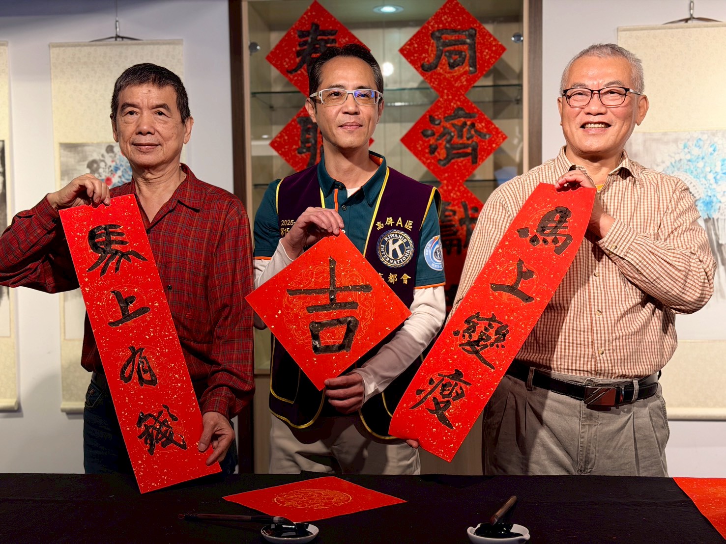 本次活動由創世基金會與高都同濟會共同主辦,特邀高雄市中國書畫學會會館理事長蔡嘉琛及常務理事陳俊合老師現場揮毫義寫,書法作品提供高都同濟會會友認購,將藝術祝福轉化為公益力量,凝聚會友情誼與社會關懷。