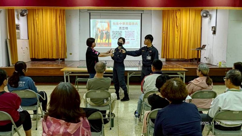 【記者何勁陞/高雄報導】為強化社區居民自我保護意識,營造更安全的居住環境,左營區新光里於11月22日舉辦實用防身術訓練課程。此次活動特別邀請高雄憲兵隊三位弟兄——高苙瑋、張芮綺、吳靖皓——蒞臨指導。憲兵隊專業又親切的教學讓課程氣氛活潑熱絡,社區巡守隊與守望相助隊隊員皆表示受益匪淺。
