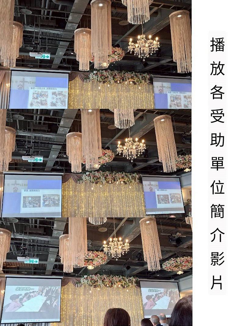 感恩餐會中除了有播映各受助單位的簡介影片,也由主持人黃哲志長老訪問了些受助單位,並由全方位各董事們頒贈補助金給各團體。