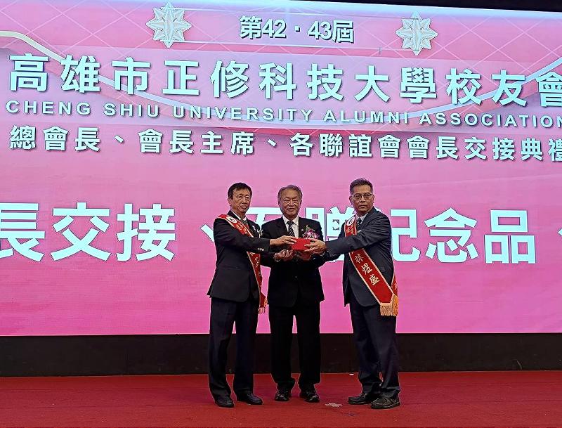 【記者夏太育/高雄報導】正修科大校友總會第42、43屆總會長交接在高雄圓山大飯店舉行,身著原住民傳統服飾的Pakelang原青社優美歌聲、校友熱情舞蹈,氣氛相當熱絡,標榜「正修盛事,歡慶甲子,正修114 ㄧ起做大事」的新科總會長林煜盛說,母校明年適逢60週年,將擴大舉辦校友回娘家活動,永遠以正修人為榮。