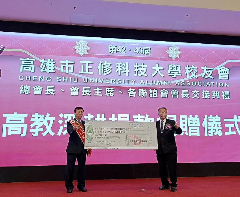 校友總會也當場捐贈高教深耕款項74萬2千元給母校,教育部也會同額補助正修科大,嘉惠全校師生,讓教學品質更優質化。
