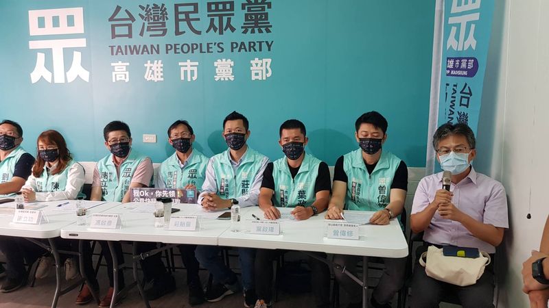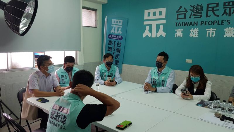 民眾黨秘書長謝立功、民眾黨高雄市黨部主委馮啟彥與提名人包括莊貽量(左楠)、劉家榮(旗鼓鹽)、陳妙真(鳳山)、葉政瑋(前鎮小港)、曾偉修(鼓山區龍子里)、賴竑嘉(鼓山區厚生里)及蘇偉碩醫師,共同希望喊聲高雄市政府:「配套要到位,不只記者會!」、「有政府,不排隊。」、「政策要落地、防疫有數據」。種種防疫措施不能忽視社會現實,放任民眾自主應變、自求多福 ,並邀集民眾若有相關問題,可透過黨部與「防疫服務小組」尋求協助,一起攜手度過疫情!