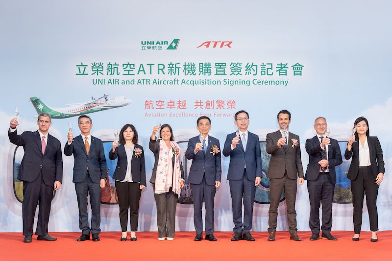【記者李祖東/高雄報導】 立榮航空今(25)日於台北寒舍艾美酒店隆重舉行「立榮航空ATR新機採購簽約記者會」,由立榮航空林志忠董事長與法國Avions de Transport Régional(以下簡稱ATR)飛機製造公司執行長Nathalie Tarnaud Laude共同簽署19架ATR 72-600全新客機的採購合約,並邀請交通部陳世凱部長及ATR飛機製造公司資深副總裁暨商務長Alexis Vidal共同見證,民航局何淑萍局長等貴賓亦蒞臨現場,充分展現主管機關對離島與東部交通發展的高度重視與支持,本次交易金額達4.37億美元,額外保留3架航機採購選擇權,為立榮航空國內線經營布局與永續發展的重要里程碑。