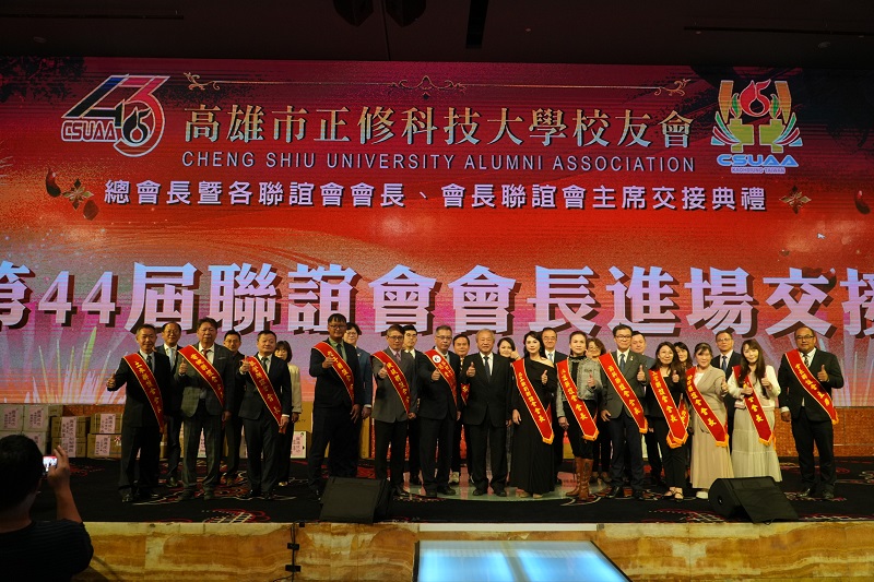 【記者夏太育/高雄報導】正修科技大學第43、44屆總會長暨各聯誼會於14日在林皇宮舉行,席開37桌,近400位校友齊聚,新任第44屆總會長由黃明祿提出「正修115・明祿領航・活力飛揚」。龔瑞璋校長肯定校友會傳承有成,凝聚向心力,深化校友與母校連結,持續支持校務發展。
