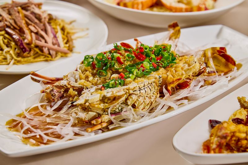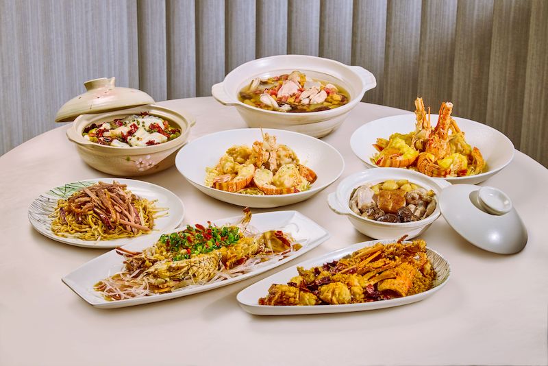 京翠港式飲茶以四道匠心獨具的龍蝦饗宴打頭陣,「蒜蓉清蒸青龍」保留食材原味,以蒜香提鮮,肉質細嫩鮮甜;「避風塘炒青龍」選用金黃蒜酥、辣椒與蝦醬快炒,風味濃郁,香辣過癮;「法式香草焗青龍」揉合中西技法,香草白醬醇厚滑順,與龍蝦鮮香交織平衡;「金湯奶油焗青龍」則以南瓜融合奶油細火慢燉,湯汁濃郁醇厚,展現中式料理的細膩火候。除龍蝦料理外,亦同步推出四道季節私房菜:「冬瓜瑤柱田雞湯」選用老母雞與乾瑤柱熬煮高湯,搭配冬瓜與田雞肉,湯頭清甜回甘;「蒜子燒肉田雞煲」將蒜頭與五花燒肉慢燉田雞,鹹香下飯;「酸菜煮龍膽斑球」以酸菜引味,龍膽斑滑嫩鮮香;「茄子火鴨炆伊麵」以火鴨油香入味伊麵,搭配茄子燴煮,口感層次豐富。