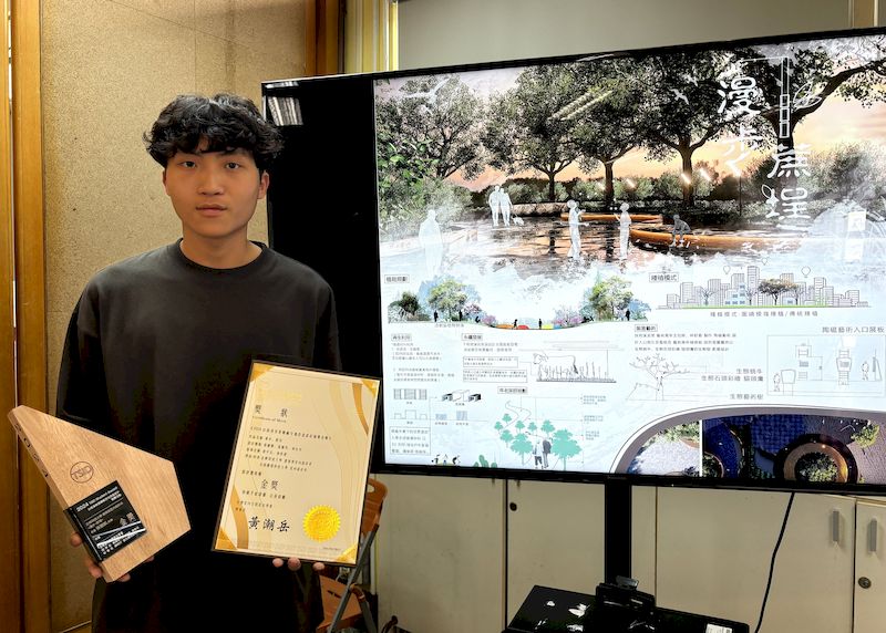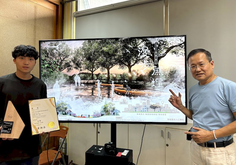 【記者夏太育/高雄報導】正修科大建築系二年級同學張弼凱「漫步、蔗埕」作品參加「2024台南溪美里糖廠空地改造設計競賽」,從全國大專校院40多件作品脫穎而出,一舉摘下金獎,消息傳回學校,全校師生與有榮焉。