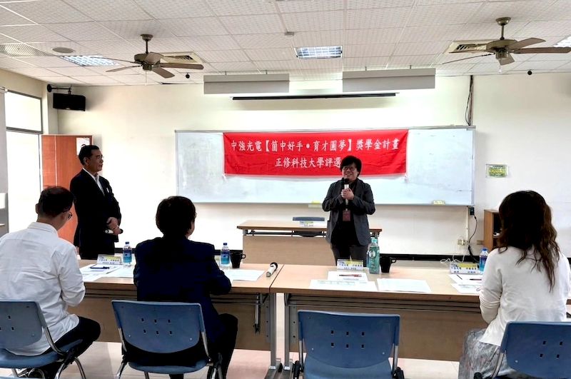 中強光電日前由副處長黃俊蓉帶領處長吳坤祐、資深經理蔡佳倫、經理何佩玲及管理師李宥璇到校舉辦評選會,由正修機械系及電子系符合資格的學生向中強光電主管進行簡報,依照他們的專長,若有機會進入中強光電,能對公司做出什麼貢獻。