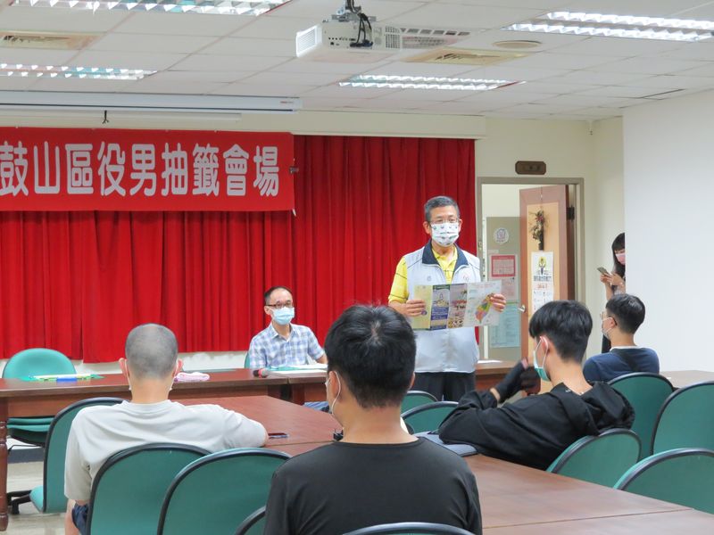 【記者張加達/高雄報導】高雄市鼓山區公所今(4)日舉行役男抽籤,高雄市軍人服務站站長劉訓誠前往區公所,向役男及其家屬說明軍人之友社服務工作內容,並提醒目前軍事訓練役男訓練做法,入伍後前5週在新訓中心受訓,後續將到部隊實施11週專長訓練,並有 ...